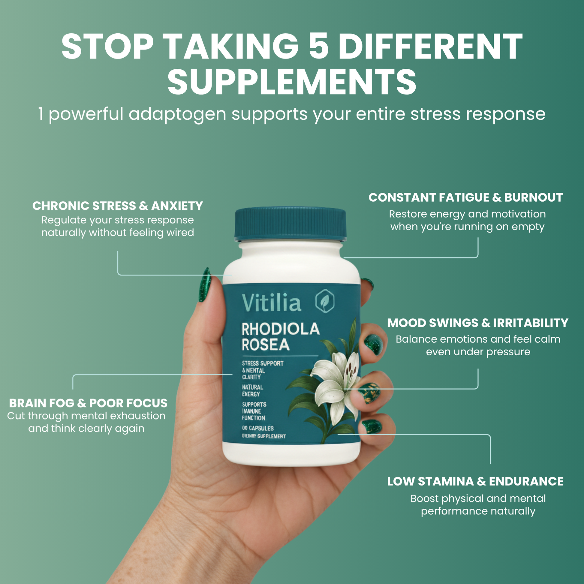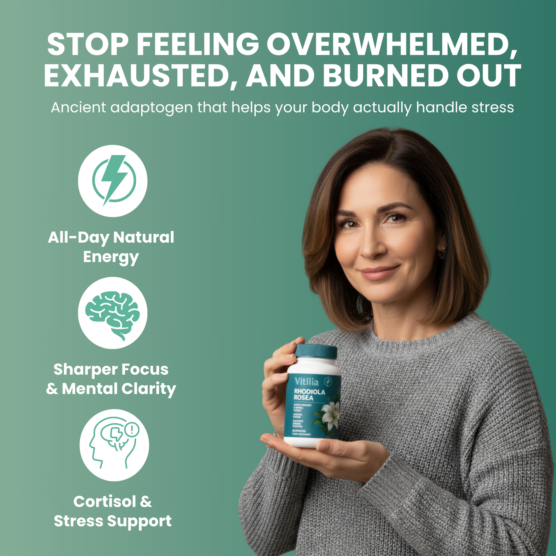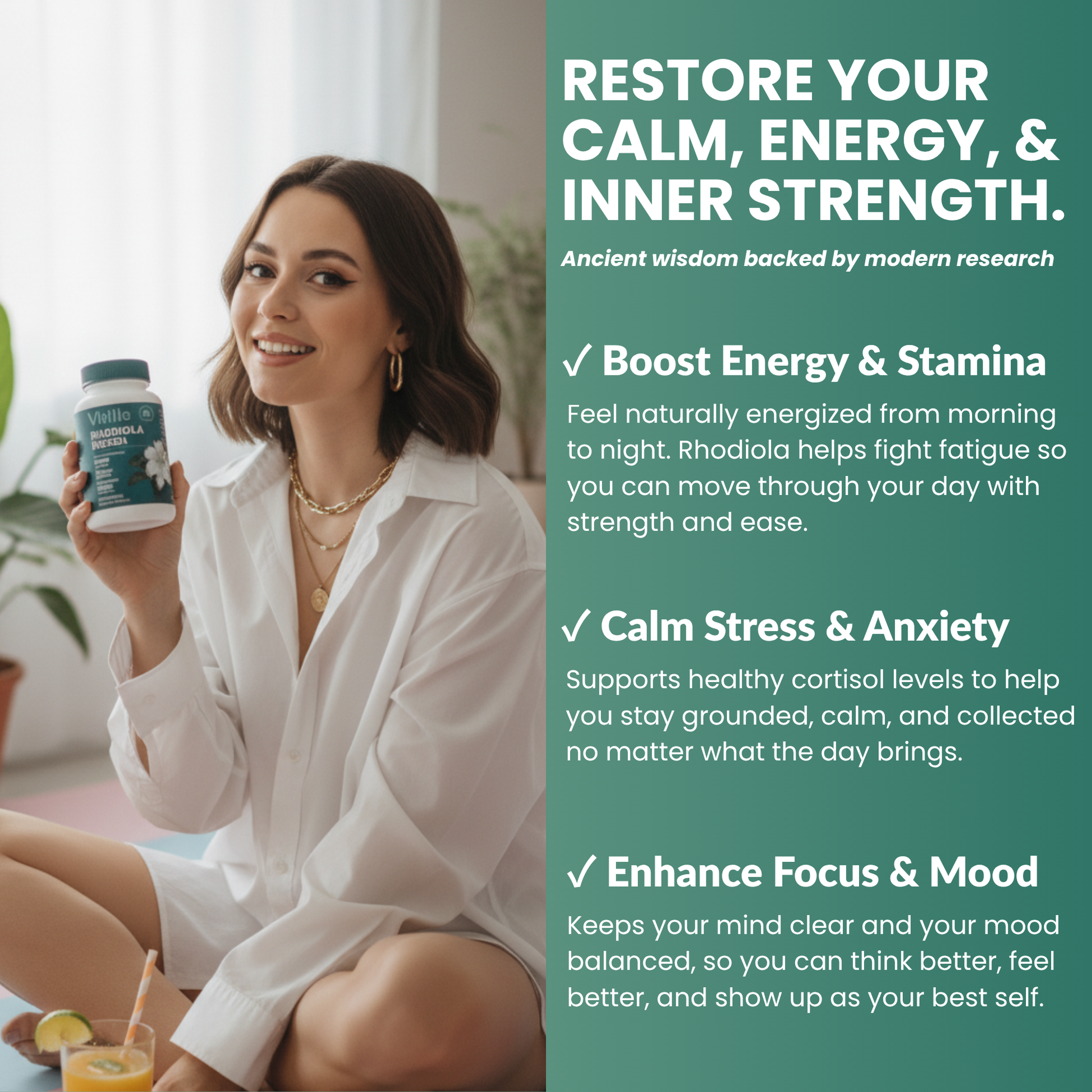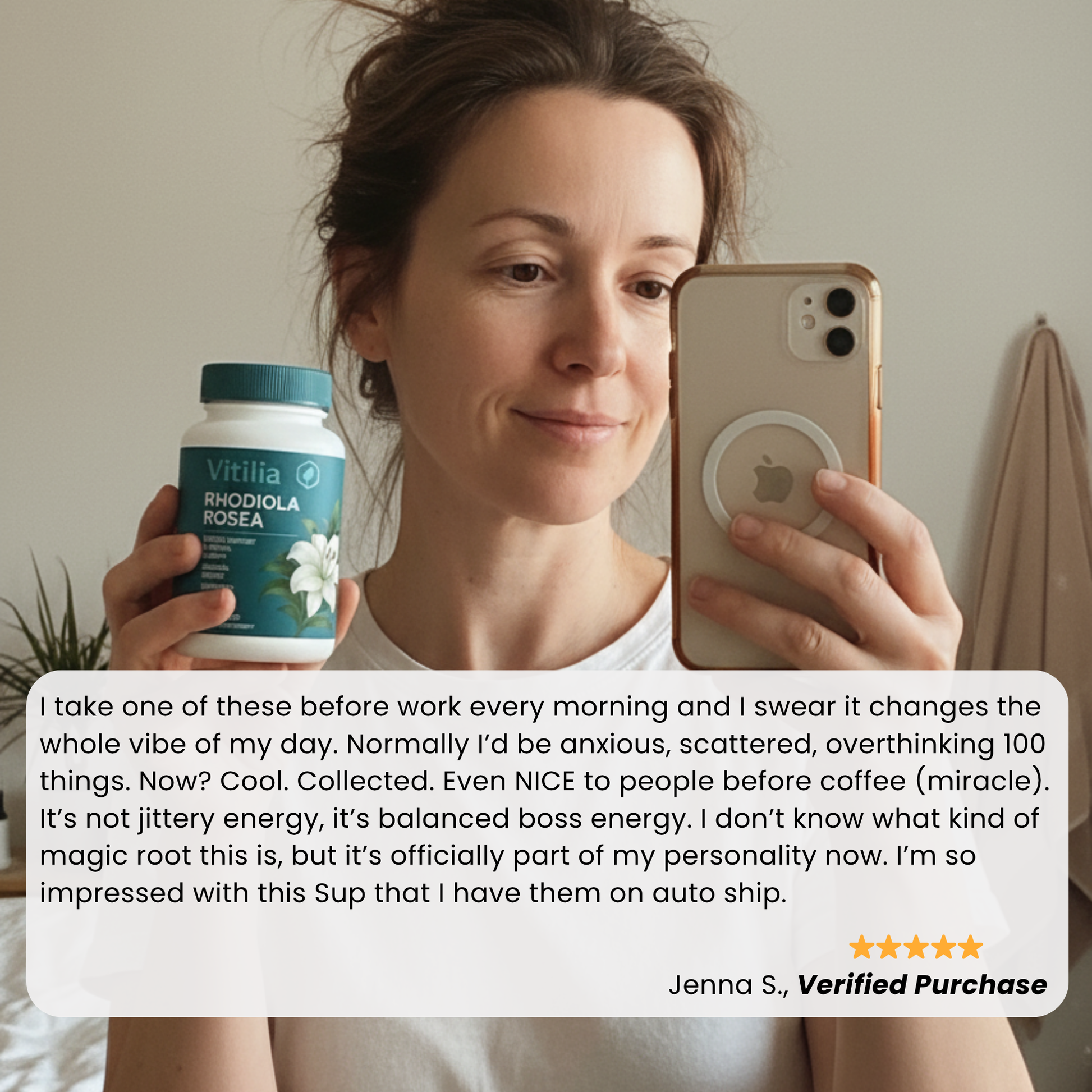 Endurance, focus, and motivation naturally build. You’ll notice sharper thinking, more consistent energy, and renewed confidence. Rhodiola supports your mind and body so you can perform - without burnout.