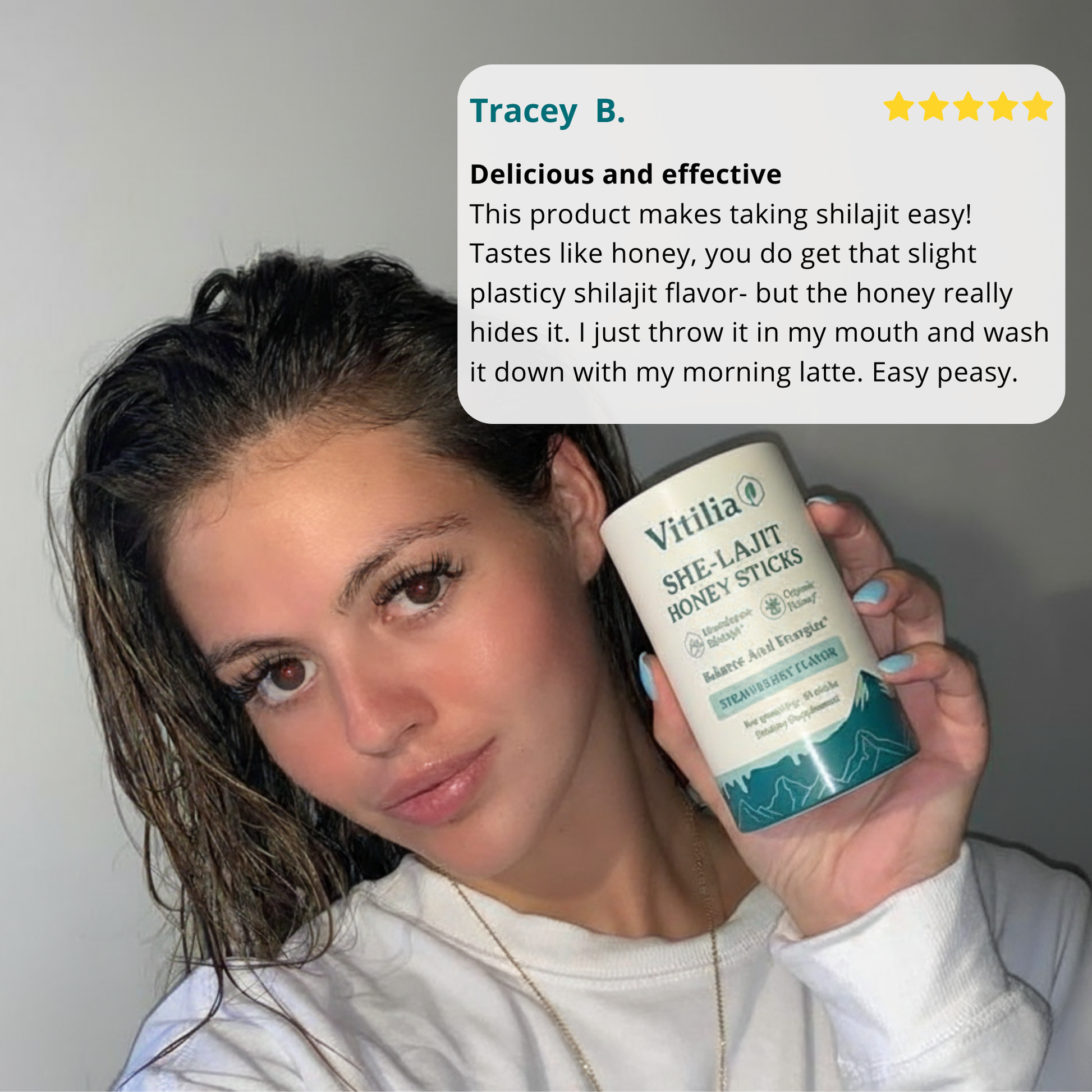 "Every other brand tasted nasty and sat in my drawer. Vitilia sticks actually tastes good. Smooth honey, zero weird aftertaste. One stick with my morning coffee and I’m powered through the day with steady, usable energy. Easy, clean, and finally something I don’t dread taking."★★★★★